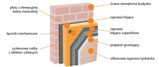 System ocieplania budynków oparty na wełnie mineralnej z silikonową zewnętrzną wyprawą tynkarską ARMASIL T.