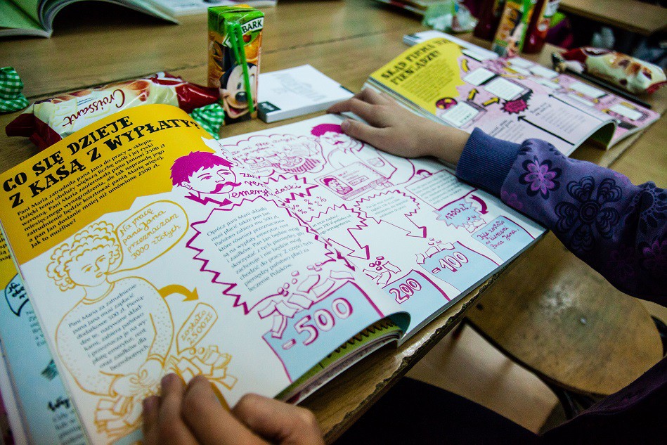 Przekazane uczestnikom zajęć publikacje „Świat Pieniądza” to wydawnictwo dla dzieci i młodzieży, poruszające wszystkie najważniejsze tematy ekonomiczne. Została stworzona przez młodych dla młodych. Jej autorka, Patrycja Krzanowska, obecnie studentka, sama szukała takiej książki, gdy była nastolatką. Niestety żadna nie spełniła jej oczekiwań, dlatego postanowiła ją stworzyć. Wydawnictwo odpowiada na wiele pytań nurtujących młodych ludzi: „Jak odróżnić bank od piramidy finansowej?”, „Dlaczego jedni zarabiają więcej a inni mniej?”, „Ile mogę pożyczyć, by nie mieć kłopotów?”. Książka jest pisana językiem bardzo przystępnym, bogata w ciekawostki, ma ciekawą szatę graficzną. Trudne definicje przełożone są na prosty, zrozumiały dla dzieci język, co pozwala im zrozumieć podstawy mechanizmów na jakich opiera się skomplikowana machina finansów i ekonomii.