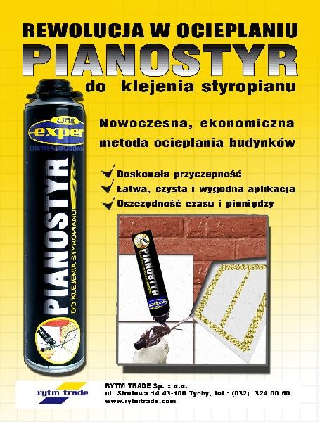 PIANOSTYR EXPERT LINE 750ml jednoskładnikowy niskoprężny klej do mocowania płyt styropianowych przy ocieplaniu ścian zewnętrznych budynków metodą lekką- mokrą.