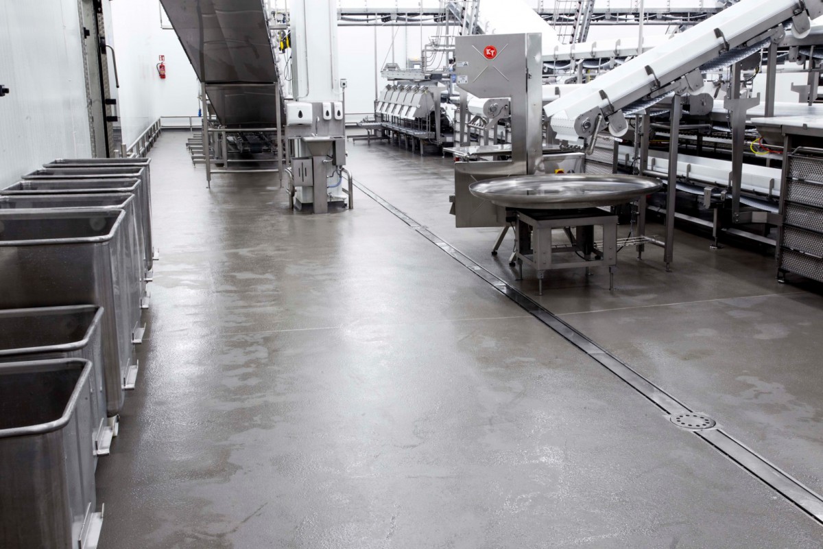 Fot. Flowcrete PolskaW nowej hali ZM Zakrzewscy na powierzchni 3000 m kw. wykonano specjalistyczne, antybakteryjne posadzki Flowfresh HF o grubości 6 mm, w kolorze jasnoszarym. Są to bezspoinowe poliuretanowo-cementowe posadzki żywiczne przeznaczone m.in. do stosowania przy mokrych procesach przetwórczych w przemyśle spożywczym. Zawierają dodatek Polygiene® wykorzystujący innowacyjną technologię na bazie jonów srebra, który zmniejsza ilość drobnoustrojów na powierzchni posadzki nawet o 99,9%. Posadzki Flowfresh uzyskały międzynarodowy certyfikat organizacji HACCP International, który potwierdza, że mogą być stosowane w zakładach spożywczych jako rozwiązanie spełniające najwyższe światowe wymogi w zakresie jakości i bezpieczeństwa żywności.
