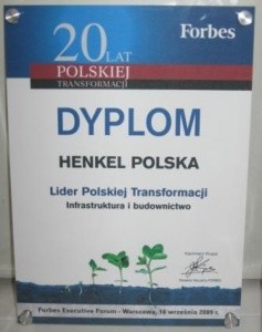 Kapituła konkursu zorganizowanego przez magazyn Forbes doceniła sukcesy firmy na rynku krajowym oraz jej wysoką innowacyjność. Henkel Polska został wyróżniony w branży infrastruktura i budownictwo. Koncern jest obecny na polskim rynku od 1990 roku.