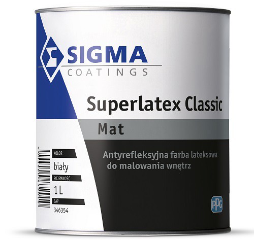 Dzięki antyrefleksyjnej formule, farba optycznie niweluje refleksy świetlne i sprawia, że wszelkie nierówności podłoża i załamania, gdzie zazwyczaj skupiają się promienie słoneczne, są maskowane. Ponadto, matowe wykończenie oraz długi czas pracy otwartej sprawdzą się wszędzie tam, gdzie potrzeba zatuszować ewentualne niedoskonałości sufitu, wybrzuszenia ściany czy smugi po wałku malarskim. Dzięki temu produkt idealnie nadaje się do zastosowania na silnie naświetlone ściany oraz sufity dużych pomieszczeń. Dzięki najniższej klasie emisji – klasa A+ - produkt jest również rekomendowany do pokoi dziecięcych. Produkt w praktyce jest bezwonny i bezzapachowy = bezpieczny w stosowaniu. Silnie matująca formuła farby sprawi, że ściany pomieszczenia będą wyglądać bardzo estetycznie, nawet jeśli nie są idealnie gładkie. Superlatex Classic dostępna jest w kolorze białym oraz w komputerowym systemie kolorowania ponad 6000 kolorów „od ręki”. Duży zakres kolorów w połączeniu z głębokim matowym efektem gwarantują, że każdy dopasuje produkt do indywidualnych oczekiwań. Oprócz zalet estetycznych, przy farbach do wnętrz bardzo ważne są również właściwości użytkowe związane ze zmywalnością i czyszczeniem. Farby lateksowe są jednymi z najbardziej odpornych także na mocne szorowanie. Superlatex Classic cechuje się również podwyższoną plamoodpornością, co w połączeniu z pozostałymi właściwościami farby pozwala w łatwy sposób utrzymać ściany w czystości i sprawia, że farba sprawdzi się w kuchniach, restauracjach czy stołówkach szkolnych, czyli wszędzie tam gdzie plamy z wina, keczupu czy coli na ścianie są codziennością.