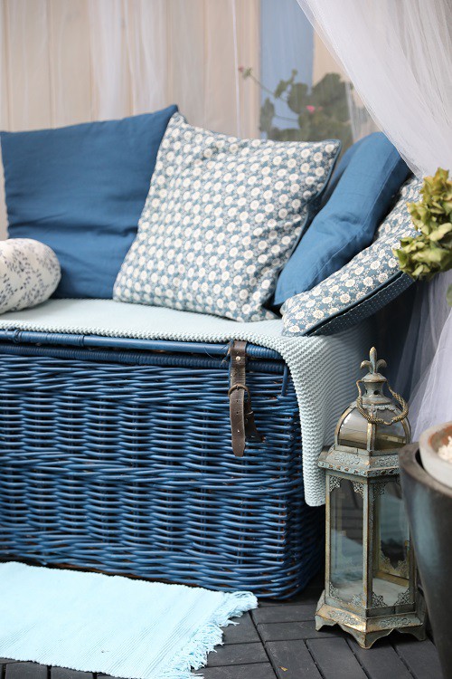 Współczesne balkony to coraz częściej przedłużenie mieszkania, małe oazy spokoju, które tak samo jak inne części wnętrza wymagają estetycznej oprawy. Na co zwrócić uwagę przy aranżacji, szczególnie, jeśli balkon ma spełniać, zarówno reprezentacyjne, jak i praktyczne funkcje? Ważne, aby meble, kolory oraz dodatki były spójne pod względem barwy i stylistyki. Jeśli zdecydujemy się na wprowadzenie wakacyjnego klimatu ze słonecznych wysp greckich, pamiętajmy o charakterystycznej gamie kolorystycznej, naturalnych materiałach. Stara, urokliwa wiklinowa skrzynia może również stać się ciekawym elementem takiej aranżacji, jeśli użyjemy odpowiedniej emalii do jej odnowienia.