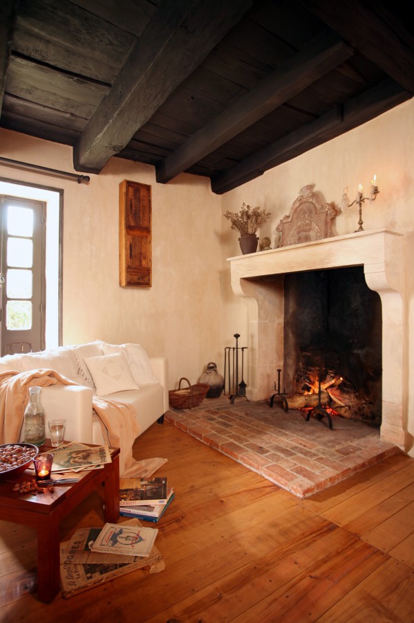Wnętrze w stylu cosagach to przestrzeń, w której króluje natura w całej okazałości: kominek opalany drewnem, drewniane meble, naturalne materiały, kolory i dodatki. Na podłodze deski, najlepiej z wyraźnie zaznaczonym rysunkiem słojów, co podkreśli zarówno ich surowe piękno, jak i emanującą z drewna energię i ciepło. Wygodne meble, miękkie dywany, duża ilość pledów, wełnianych kocy (najlepiej w szkocką kratę), poduch i poduszek zbudują przytulną atmosferę, pozwolą się rozgrzać i zrelaksować. Nie zapominajmy też, że szczęście według filozofii cosagach należy celebrować razem z bliskimi, rodziną, przyjaciółmi. Warto więc w salonie wydzielić miejsce do wspólnego spędzania czasu, wieczornych rozmów przy kominku, wspólnego wypoczynku. W aranżacji ważne są również naturalne tekstylia, lniane obrusy i zasłonki, nieduże gałgankowe dywaniki, które wprowadzą dodatkowo rys rustykalny. Całość uzupełnią akcenty roślinne, np. suszone trawy, wrzosy, owoce dzikiej róży.