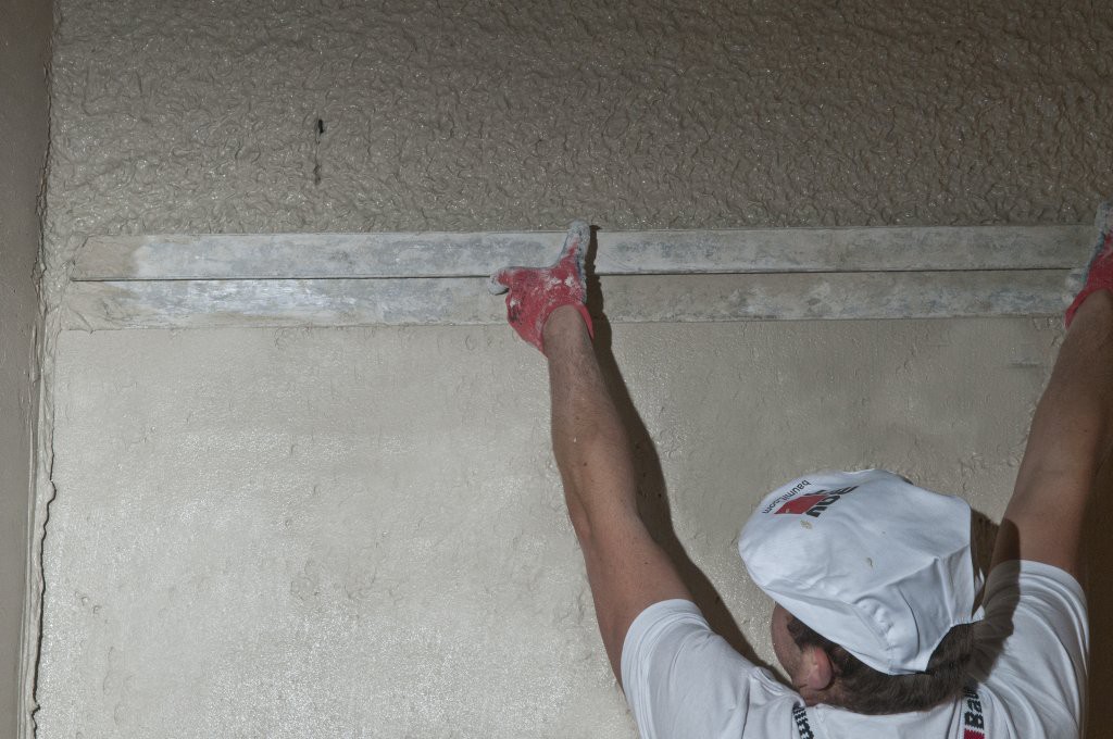 Można go nakładać ręcznie, chociaż zaprojektowany został z myślą o tynkowaniu większych metraży przy użyciu agregatu tynkarskiego. Podpowiada Tomasz Jarzyna z firmy Baumit – Produkt należy nanosić poziomo, od góry ściany, mając na uwadze, że grubość warstwy nie powinna przekroczyć 25mm. Dzięki specjalnej recepturze, materiał rozprowadza i wyrównuje się lekko za pomocą łaty tynkarskiej typu H. Jeśli pojawi się potrzeba nałożenia kolejnej warstwy, nie możemy dopuścić, aby poprzednia stwardniała i całkowicie związała lub wyschła (metoda „mokre na mokre”). Po ok. 90-120 min. od aplikacji ścianę trzeba wyrównać używając łaty trapezowej, a następnie – po wstępnym stwardnieniu tynku – wygładzić metalową szpachlą. Jednym z ostatnich kroków jest zwilżenie ściany wodną mgiełką i przetarcie pacą gąbkową – aż powstanie mleczko gipsowe. Po krótkim czasie i zmatowieniu powierzchni tynku, wystarczy już tylko wygładzić ją za pomocą długiej metalowej szpachli i pozostawić do wyschnięcia.