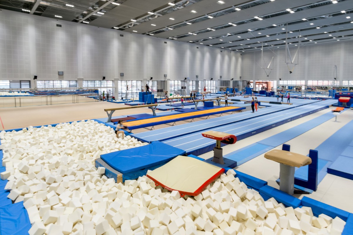 Fot. FlowcreteHala Gimnastyczna Leszka Blanika Centrum Innowacyjno-Wdrożeniowe AWFiS w Gdańsku to inwestycja zrealizowana na najwyższym, światowym poziomie. W obiekcie działa Akademia Leszka Blanika AZS AWFiS – projekt, który ma na celu rozwijanie szeroko pojętej gimnastyki i akrobatyki sportowej wśród dzieci, młodzieży i dorosłych. Kadrę szkoleniową tworzą doświadczeni trenerzy, a jednym z koordynatorów jest Leszek Blanik, Mistrz Olimpijski z Pekinu z 2008 roku i trener kadry narodowej gimnastyki sportowej mężczyzn. W głównej hali gimnastycznej została wykonana bezspoinowa posadzka żywiczna Flowshield LXP w jasnym kolorze, z dodatkiem mieszanki niebieskich płatków, w specjalnie dobranych, stonowanych odcieniach.