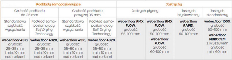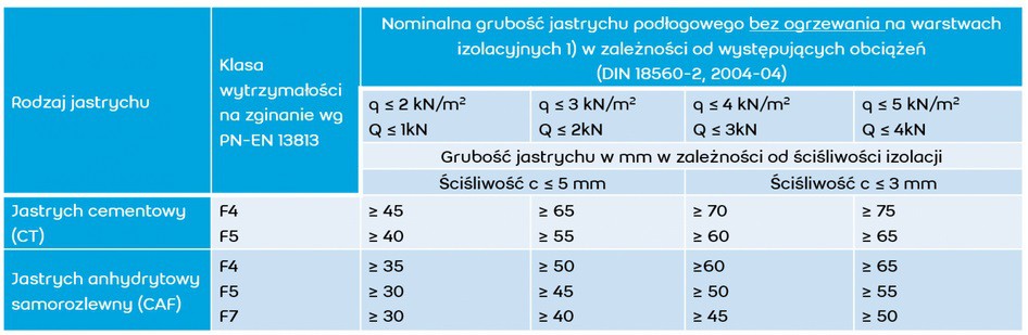 W przypadku jastrychu ogrzewanego, grubości jastrychu podane w tabeli powyżej, zgodnie z DIN 18560-2, należy powiększyć o średnicę zewnętrzną elementu grzejnego.