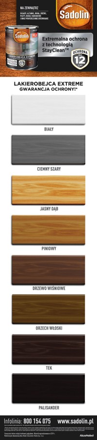 Fot. AkzoNobelSadolin Extreme chroni drewno do 12 lat, zabezpiecza przed grzybami pleśniowymi i biokorozją. Dodatkowo zastosowana w nim Technologia StayCleanTM sprawia, że brud nie przylega do wymalowanej powierzchni i łatwo się zmywa. Po każdym deszczu drewno znów wygląda pięknie i czysto. Docenią to szczególnie właściciele domów i domków z drewnianymi fasadami. Jest przy tym łatwy w aplikacji, nie chlapie, równomiernie się rozprowadza i szybko schnie.Drewno to materiał naturalny, dzięki czemu doskonale wkomponowuje się w krajobraz tętniący kolorami kwiatów i zielenią. Jest proste, a jednocześnie pełne wyrazu. Wystarczy odrobina atencji z naszej strony, a będzie nam służyło przez lata. Warto więc zadbać o nie już na samym początku, aby jak najdłużej cieszyło nas swoim pięknem i dodawało uroku naszemu otoczeniu.