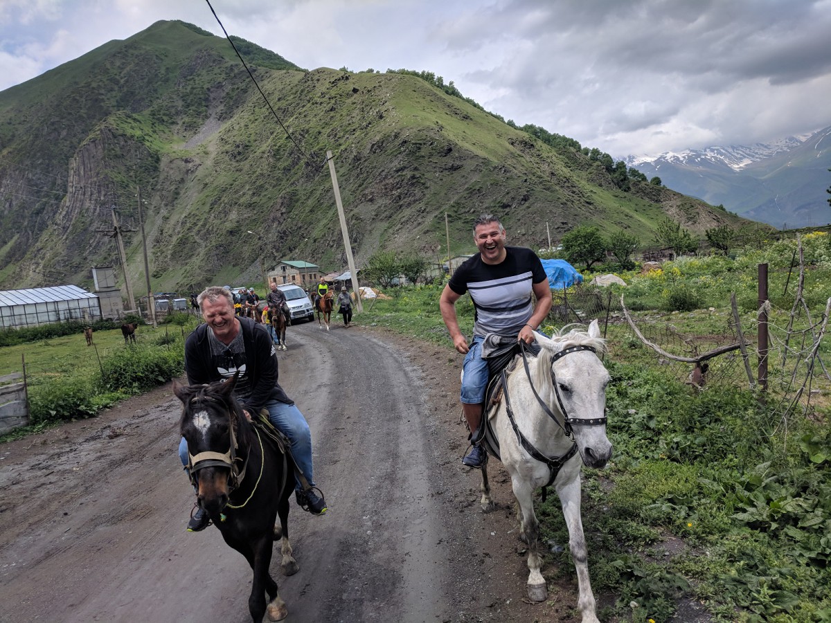 Fot. PPGKolejne dni wypełnione były po brzegi atrakcjami. Uczestnicy przemierzali galopem malownicze pasma gór i podziwiali niesamowite widoki. Trzeciego dnia część grupy zdobyła szczyt MT Mukhadze położony 3298 m. n. p. m. i nocowała w namiotach w Zeta Campie, podczas gdy pozostali mogli sprawdzić się w intensywnym trekkingu. Na zakończenie dynamicznej wyprawy na Klubowiczów czkała iście ekstremalna atrakcja - półtoragodzinny flis po rzece Aragvi. Nie był to jednak typowy turystyczny spływ, ale prawdziwy, momentami mrożący krew w żyłach, rafting! Zwieńczeniem wspólnie spędzonych dni i przeżytych przygód była wyjątkowa kolacja z pokazami artystycznymi. Miłym akcentem podczas uroczystej biesiady było też zorganizowanie dla jednej z par uczestniczących w wyprawie niespodzianki z okazji ich 35. rocznicy ślubu. Dostojni Jubilaci otrzymali od Klubu Dekoral Professional tort oraz charakterystyczny gruziński prezent w postaci pięknie haftowanego obrusu – gruzińska supra znajduje się na liście niematerialnego dziedzictwa kulturowego UNESCO.
