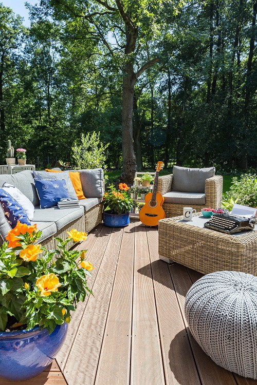Ozdobne latarenki, pnące się po ścianie domu pionowe rabatki oraz efektownie wyglądające oświetlenie to designerskie dodatki, które niskim nakładem finansowym odświeżą wygląd tarasu i nadadzą mu nowego charakteru. W połączeniu z pięknie odnowionym drewnem uzyskamy wyjątkowy efekt dekoracyjny, który będzie cieszył oko w długie, letnie wieczory.