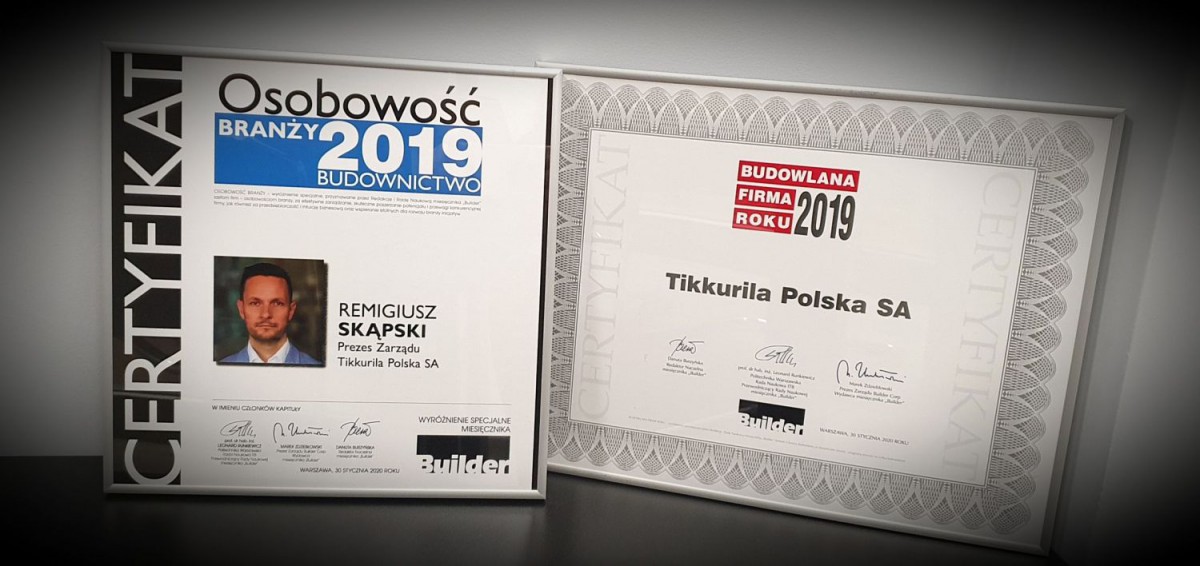 Tikkurila Polska S.A. po raz kolejny znalazła się w gronie najlepszych firm w branży budowlanej, a Remigiusz Skąpski, Prezes Zarządu, uhonorowany został tytułem „Osobowość Branży 2019”.