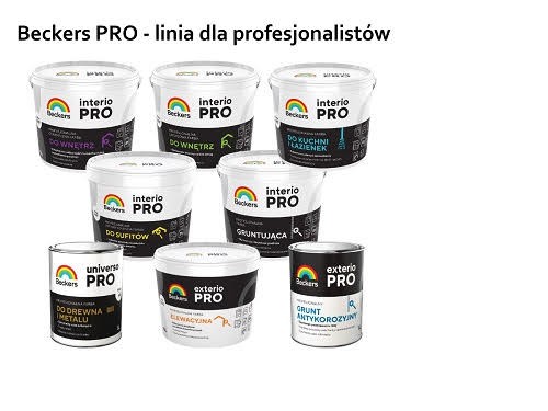 Beckers PRO to nowa linia profesjonalnych farb dla ekip wykonawczych wprowadzona na rynek przez markę Beckers. Obejmuje ona pełną gamę wysoce funkcjonalnych produktów do dekoracji i ochrony powierzchni na zewnątrz i wewnątrz pomieszczeń, w tym wodorozcieńczalne farby do ścian i sufitów, emalie uniwersalne i farbę elewacyjną. Wszystkie produkty posiadają atest Narodowego Instytutu Zdrowia Publicznego i wyróżniają się minimalną zawartością Lotnych Związków Organicznych, w rezultacie są bezpieczne dla zdrowia i środowiska. Najnowsza oferta dostępna jest w sieci Castorama.