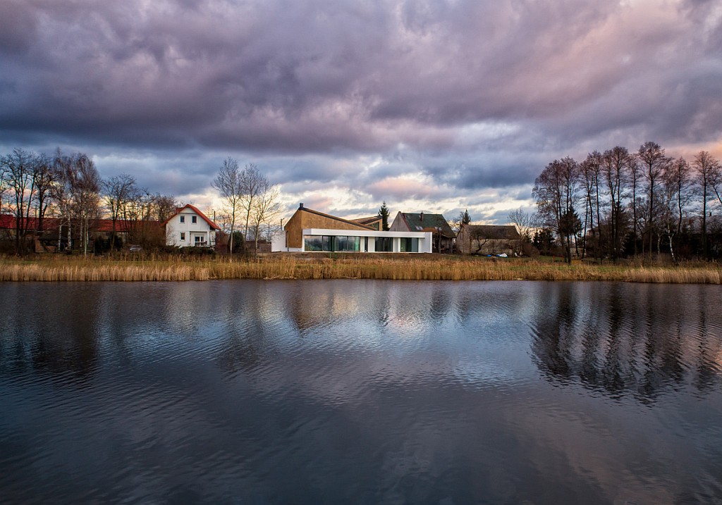 Jeśli szukacie budynku idealnie wpisującego się w otoczenie, ten dom z pewnością jest tego doskonałym przykładem. Barka Cieślika, niczym statek cumujący nad stawem wtapia się w malowniczy krajobraz miejscowości Biała, oddalonej niespełna 10 km od Częstochowy. Budynek zwyciężył w konkursie Fasada Roku 2020 w kategorii „budynek jednorodzinny nowy”.
