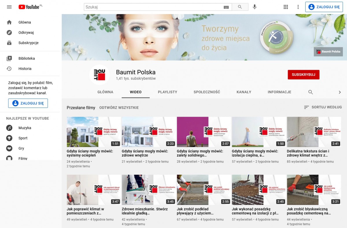 Budowa i wykończenie to temat–rzeka. Można o nich opowiadać w nieskończoność, tym bardziej, że nowo powstałe produkty przynoszą kolejne możliwości i rozwiązania. Baumit jako ekspert w dziedzinie materiałów budowlanych od wielu lat dzieli się swoją wiedzą i doświadczeniem. Także na platformie YouTube, na której znajdziemy nowe filmy instruktażowe i nie tylko.
