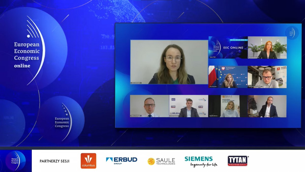 W panelu wzięli udział także: Radosław Górski, członek zarządu ERBUD SA, Agnieszka Kalinowska-Sołtys, członek zarządu w APA Wojciechowski i wiceprezes ds. środowiska i ochrony klimatu w Stowarzyszeniu Architektów Polskich, Mariusz Kondraciuk, szef pionu Smart Infrastructure w Siemens Polska, Anna Kornecka, podsekretarz stanu w Ministerstwie Rozwoju, Pracy i Technologii, Olga Malinkiewicz, założycielka i CTO w Saule Technologies oraz Dawid Zieliński, prezes zarządu Columbus Energy SA. Dyskusję moderowała Anna Sołomiewicz, dziennikarka Propertydesign.pl. Partnerami sesji otwierającej drugi dzień EEC Online byli Tytan Professional, Siemens, Saule Technologies, Erbud Group i Columbus Energy.