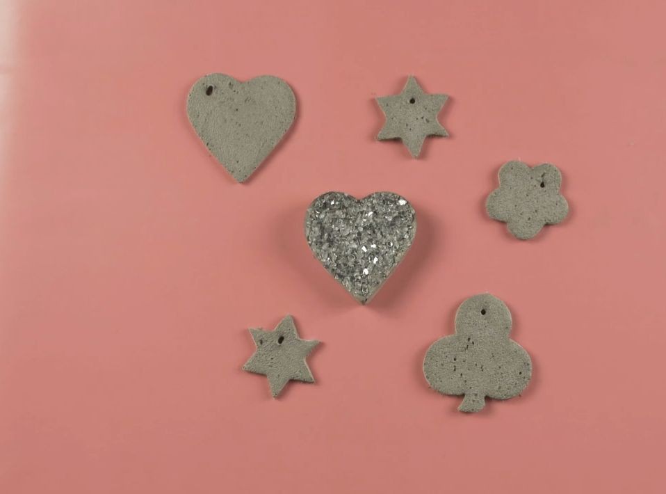 Aby stworzyć betonowe zawieszki, potrzebujesz opakowanie Betonu Kreatywnego oraz foremki do pierników. My wykorzystaliśmy takie w kształcie gwiazdki, drzewka i serca.