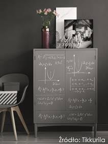 Malowanie ścian tablicówką to już klasyka, ale to zaledwie ułamek możliwości. Tak naprawdę funkcję tablicy w domu mogą pełnić różnorodne elementy domowego wyposażenia. Taca śniadaniowa pokryta czarną farbą Tikkurila Liitu będzie jedyną w swoim rodzaju ozdobą stołu, a komoda w odcieniu szarości posłuży za oryginalny notes w czasie nauki.