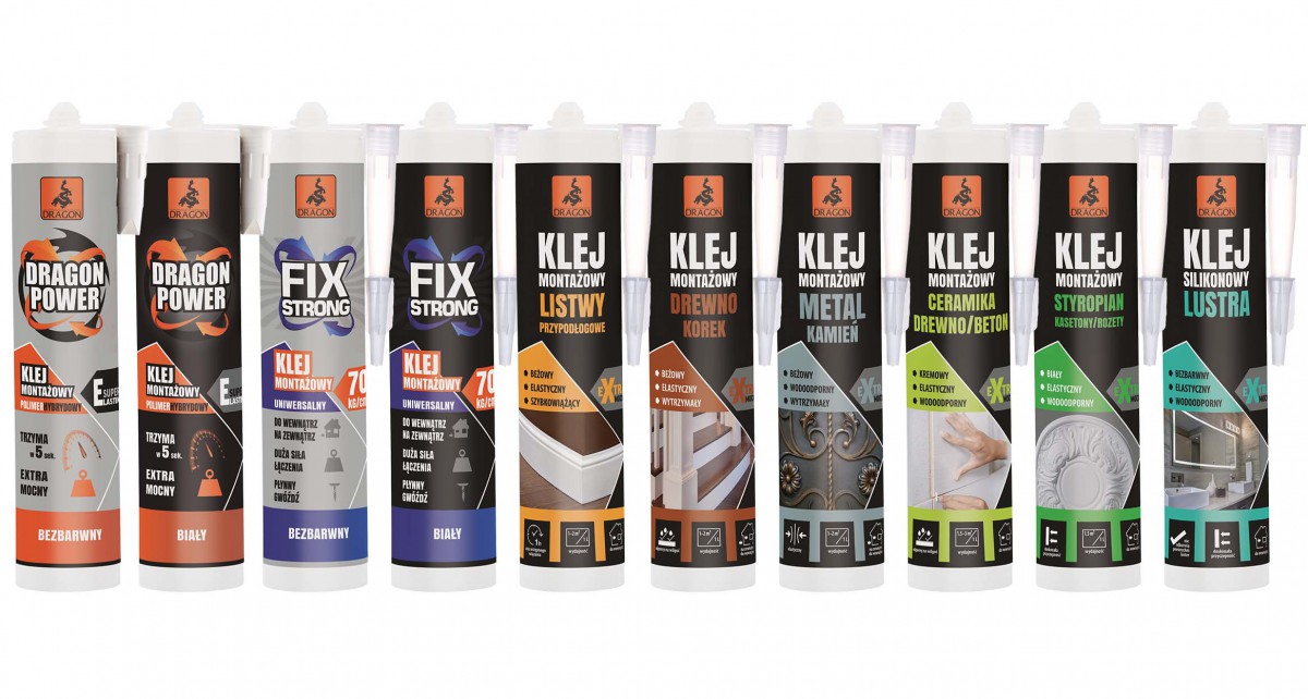 Kleje montażowe firmy Dragon Poland, które otrzymały „Nagrodę Konsumenta 2021”, to preparaty przeznaczone do łączenia ze sobą elementów z drewna, metalu, ceramiki, szkła, sklejki, materiałów drewnopodobnych, korka, a także PCW, styropianu, poliuretanu oraz tworzyw sztucznych. Dzięki nim bez problemu można przymocować m.in. listwy dekoracyjne przysufitowe czy przypodłogowe, ekrany zagrzejnikowe, płytki dekoracyjne, listewki drewniane, plafony, wykładziny, panele podłogowe i ścienne, a także laminaty.