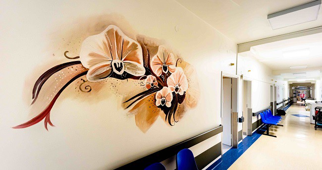 Dzięki wykonanym pracom na dębickiej ginekologii zagościła wiosna. Fundacja Śnieżka nie tylko odświeżyła bowiem sale i korytarze, lecz także zadbała o estetykę otoczenia i kobiece, pastelowe barwy. Kwiatowe zdobienia wykonała pochodząca z Podkarpacia artystka Joanna Jeleniewska, która – po raz kolejny we współpracy ze Śnieżką – włożyła wiele serca w wykonanie malunków.