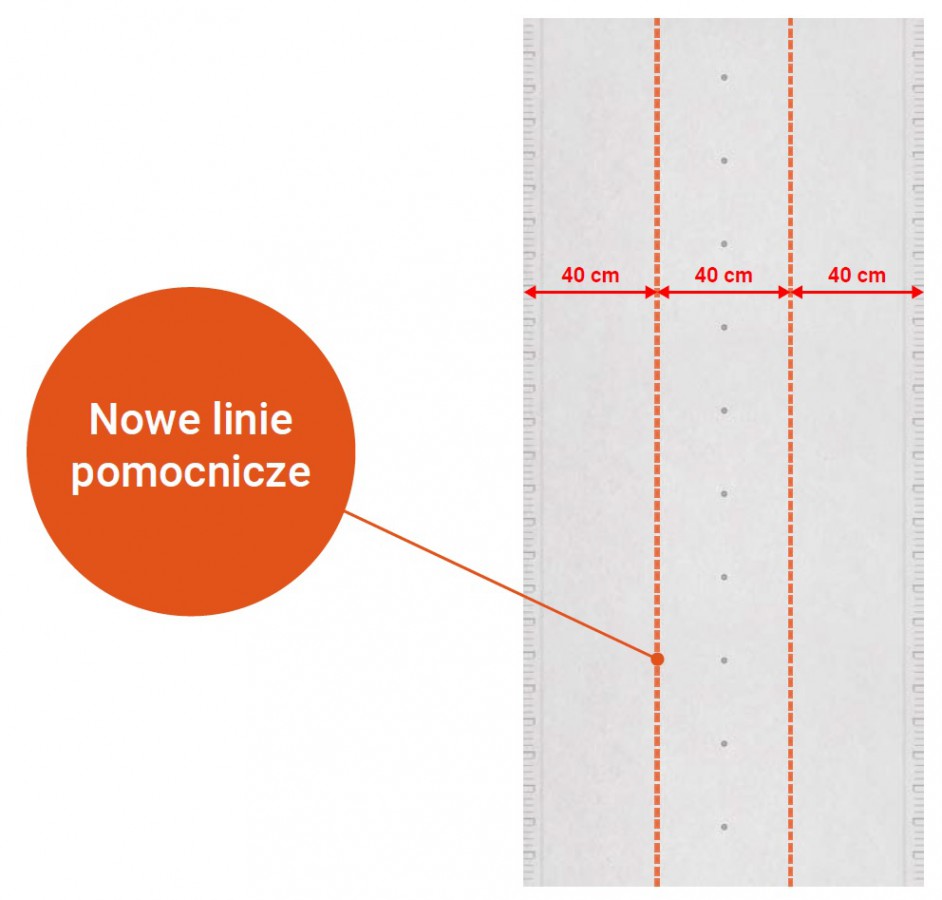 Fot. RigipsW przypadku montażu płyty do konstrukcji z profili w rozstawie co 40 cm, wykonawca za pomocą sznura traserskiego, ołówka lub lasera zmuszony jest do wyznaczenia linii, wzdłuż których będzie umieszczał wkręty. Nowa wersja płyty Rigips PRO typ A 12,5 mm posiada teraz dodatkowe linie pomocnicze, które pozbawiają wykonawcę konieczności wykonywania tych pomiarów.