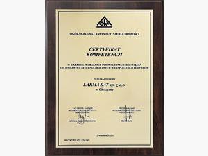 Podczas konferencji organizowanej przez Ogólnopolski Instytut Nieruchomości, która odbyła się w Ustroniu w dniach 15-16 września 2022, firma LAKMA SAT Sp. z o.o. otrzymała CERTYFIAKT KOMPETENCJI w zakresie wdrażania innowacyjnych rozwiązań technicznych i technologicznych w eksploatacji budynków.