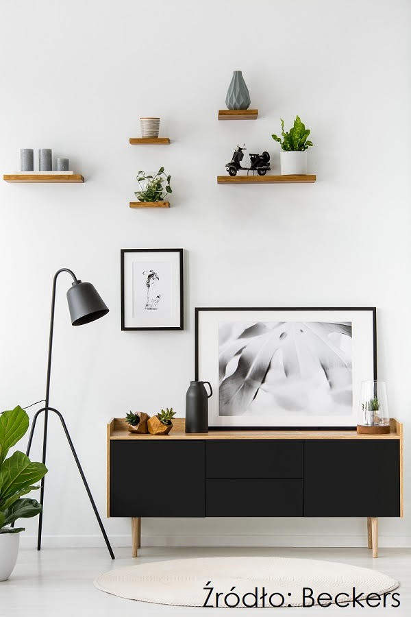 Prosta, niewyróżniająca się komoda w odcieniach jasnego drewna pokaże designerski charakter po pomalowaniu frontów szuflad na czarno. W zestawieniu z dekoracjami i grafikami w tej samej tonacji pozwoli stworzyć wyjątkową aranżację, w której biało-czarna klasyka przeplata się z naturalnymi ciepłymi akcentami drewna i kwiatów doniczkowych. Emalia Beckers Designer Universal pozwoli na szybkie przeprowadzenie prac i uzyskanie zachwycającego efektu nawet niewprawionej osobie. Ma przy tym przyjazną dla zdrowia i środowiska formułę. Może być bezpiecznie stosowana także w pomieszczeniach użytkowanych przez alergików czy małe dzieci, a nawet można malować nią zabawki.
