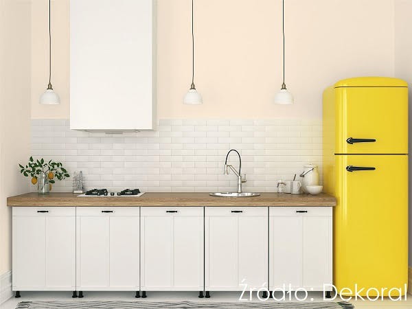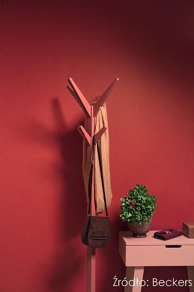 Fot. BeckersZabawa kolorem dla zaawansowanych to wnętrze zdominowane przez jeden wyrazisty kolor. Takie rozwiązanie sprawdzi się np. w przedpokoju. Można się pokusić nawet o czerwienie, a kluczem do dekoracyjnego sukcesu będzie gra odcieniami. Jeśli na ścianie znajdzie się mocny lecz ciepły kolor Cherry z palety Beckers Designer Colour, a drewniany nowoczesny wieszak i stolik zostaną pomalowane jaśniejszymi odcieniami z tej samej rodziny barw, to uzyskamy intrygujący efekt od samego progu domu. Głębię czerwieni dodatkowo podkreśli detal w żywej zieleni, jak choćby doniczkowa roślina.Jeśli ktoś kocha kolory, ale bliska jest mu też zasada, że mniej znaczy więcej, warto postawić na jeden element wyposażenia w zdecydowanej barwie. W przypadku kuchni może to być np. stylizowana lodówka w słonecznym żółtym kolorze. Jej niebanalność będzie szczególnie dobrze widoczna na tle jasnego otoczenia – ścian pomalowanych farbą Dekoral Łazienka & Kuchnia w delikatnym odcieniu Morelowy Pastelowy oraz frontów szafek w złamanej bieli. Biel minimalistycznej bryły wyciągu kuchennego, w dyskretny sposób podkreśli udany mariaż nowoczesności z tradycyjnym designem.