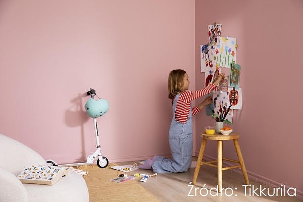 Towarzyszenie dziecku w odkrywaniu jego artystycznych zainteresowań to fascynująca przygoda, choć czasem oznacza też testy wytrzymałościowe dla otoczenia. Stawką jednak może być wybór życiowej drogi, więc warto poszukać rozwiązań ułatwiających realizację plastycznych pasji. Ściany pomalowane farbą Tikkurila Optiva Nature w wesołym różu Beach Day, dzięki najwyższej klasie odporności na mycie i szorowanie na mokro, zniosą wiele prób twórczej ekspresji. Jeśli zaś wcześniej zostaną pomalowane Tikkurila Magnetic, ściana zyska właściwości magnetyczne i będzie mogła zostać wykorzystana do stworzenia galerii prac z użyciem magnesów. Podkład magnetyczny można także pokryć farbą tablicową Tikkurila Liitu wybarwioną na dowolny z 13 tysięcy odcieni, wówczas rysunki kredą będą mogły powstawać wprost na ścianie.