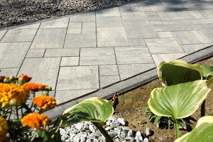 Flesz można z powodzeniem wykorzystać jako krawężnik w opasce dookoła domu, gdzie zresztą doskonałe zastosowanie znajdą także płyty Bosso o boku 60 cm jako materiał do budowy nawierzchni. Z tą jednak różnicą, że nie będziemy z nich układać jednolitej nawierzchni, a zastosujemy metodę step by step. Polega ona na zachowaniu pomiędzy płytami „pustych” przestrzeni równych długości ludzkiego kroku. Wypełnia się je kruszywem w kolorze białym lub szarym. W tej roli świetnie znajdą się też płyty Bosso Trapez, które mają modny kształt trapezu. Poza interesującym i nowoczesnym wyglądem alejki, umożliwia to wnikanie i jednoczesne odparowywanie nadmiaru wody zgromadzonej w gruncie, a także przeciwdziała kumulowaniu się wody bezpośrednio przy ścianie budynku. Pamiętajmy o nachyleniu nawierzchni pod kątem 2 proc. od ściany budynku. Zaleca się również, żeby ta „obwodnica” dookoła domu nie była węższa niż 40 do 60 cm. To kwestia naszego komfortu! Przy budowie opaski możemy użyć także płyt Polbruk Exa. Charakteryzują się one unikatowym kształtem przypominającym plaster miodu, czyli heksagon. Żeby nadać im bardziej nowoczesny design, zmodyfikowano nieco długości ich boków, co zapewniło ekstrawagancki efekt. Exa jest dostępna w nowoczesnym kolorze taupe, który stanowi mieszankę mokki, stalowego i białego.