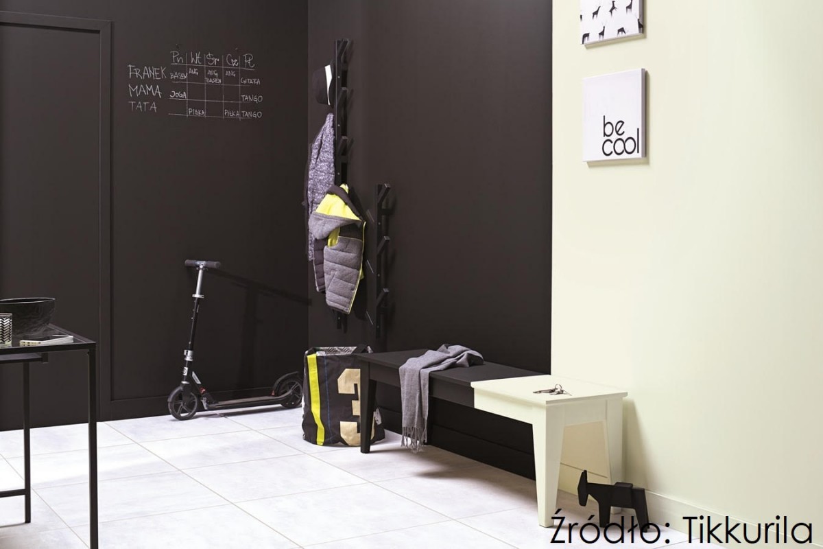 Ciekawą alternatywą będze pomalowanie drzwi oraz otaczającej ich ściany czarną farbą Tikkurila Liitu. Cała powierzchnia zmieni się wówczas w tablicę, po której będzie można pisać kredą.