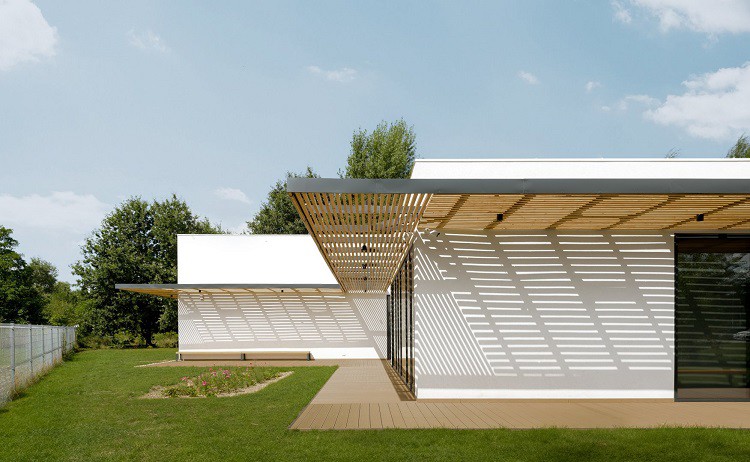 Geometryczna faktura, przeszklenia i zadaszenia to główne środki wyrazu, jakimi posłużono się w projekcie. Zastosowane rozwiązania, choć proste, podkreślają nowoczesne oblicze stworzonej architektury.