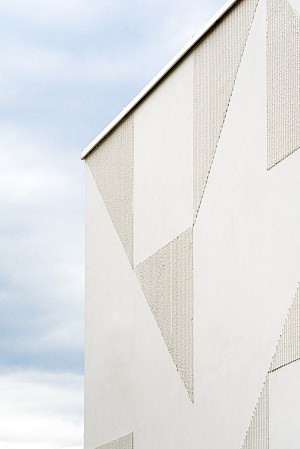 W myśl minimalizmu budynek jest w zasadzie monochromatyczny. Elewacje zakomponowano w bieli i pokryto tynkiem silikonowym. Jedynie od frontu zastosowano układ mozaikowy tynku czesanego z wykorzystaniem tynku modelowanego Baumit CreativTop, pozwalającego na tworzenie różnorodnych struktur na elewacji.
