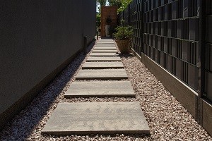 Innym ciekawym rozwiązaniem jest budowa nawierzchni metodą step by step. Metoda ta polega na układaniu płyt w pewnej odległości od siebie. Odległość powinna być równa mniej więcej długości ludzkiego kroku, aby spacer po tak ułożonej nawierzchni był komfortowy. Przestrzenie pomiędzy płytami najczęściej wypełnia się grysem lub obsiewa trawą i tak powstaje powierzchnia biologicznie czynna. Ten sposób budowy nawierzchni doskonale sprawdza się na podjazdach, ciągach pieszych, a także w przypadku opaski wokół domu. Płyty w połączeniu z grysem to dobre rozwiązanie w strefie wejściowej, na podjeździe i w charakterze opaski, w połączeniu z trawą świetnie sprawdzą się natomiast na ogrodowych alejkach, w parkach, ale także na przydomowych podjazdach. W przypadku budowy nawierzchni metodą step by step najbardziej funkcjonalne są wielkoformatowe płyty, jak wspomniana wcześniej Magna. Jest to jedna z największych płyt dostępnych na rynku, bo ma wymiar 100x75 cm i 75x50 cm oraz dwie grubości do wyboru: 8 i 10 cm. Powierzchnia biologicznie czynna nawierzchni ułożonej tą metodą jest zmienna i zależy od zastosowanych odległości pomiędzy płytami. Innym ciekawym rozwiązaniem, w którym mamy wpływ na wielkość przestrzeni biologicznie czynnej jest kostka Dynamik. Ma ona dość oryginalny kształt fali i można z niej, podobnie jak z płyt Magna stworzyć nawierzchnię pełną, ale można też pomiędzy poszczególnymi elementami pozostawić puste miejsca. Im więcej pustych miejsc, tym większa przepuszczalność nawierzchni. Płyty Dynamik mają wymiar 50×14 cm i grubość 8 cm. Dostępne są w trzech odcieniach szarości (nerino, stalowy, grafitowy) oraz w kolorze beżowym – ivory. Prezentują się bardzo efektownie i designersko, a możliwość zestawienia płyt i pozostawienia otworów według indywidulanych preferencji sprawia, że taka nawierzchnia jest nie tylko ekologiczna, ale też niepowtarzalna.