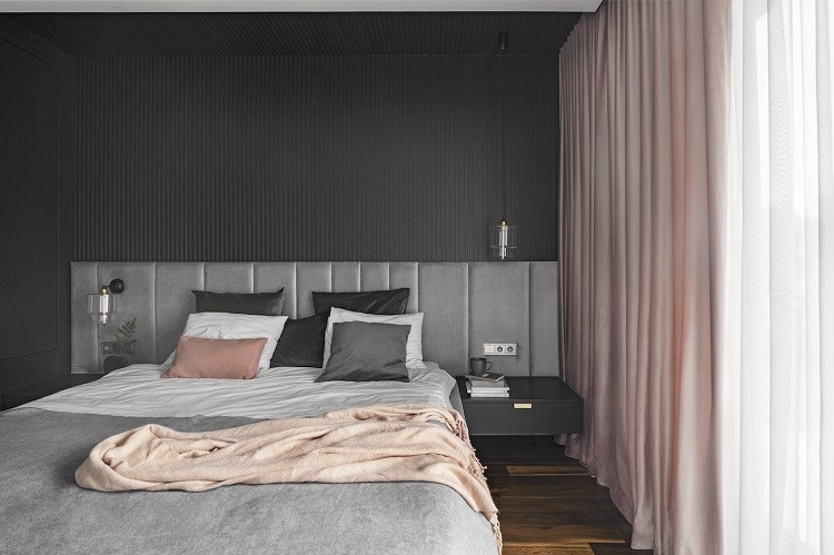 Sypialnia, serce domowego azylu, zyskała na głębi i spokoju dzięki zastosowaniu matowych, spokojnych tonacji. Kluczowym elementem stały się tutaj lampy nocne od Kaspa, które swoim subtelnym światłem tworzą idealne warunki do relaksu. „Chcieliśmy, aby sypialnia stała się przestrzenią maksymalnie kojącą i intymną. Użycie tkanin o bogatej teksturze i ciepłych, neutralnych kolorach pomogło nam osiągnąć ten cel” - mówi Skonieczko. Na uwagę zasługują również starannie dobrane zasłony w odcieniu przygaszonego różu oraz dekoracje, które dodają charakteru bez zakłócania spokojnej atmosfery.