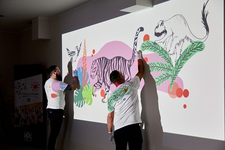 Fot. PPGPartnerem formalnym PPG przy realizacji projektu była Fundacja Rozwoju Przedsiębiorczości Społecznej „Być Razem” z Cieszyna. W trwający ponad 3 tygodnie remont zaangażowało się 30 wolontariuszy PPG, którzy aktywnie uczestniczyli w pracach porządkowych oraz malowaniu ścian. Jednym z etapów projektu było wspólne malowanie murali przez pracowników-wolontariuszy z firmy PPG pod profesjonalnym nadzorem autorki koncepcji - artystki Agnieszki Sojki-Swobody Podczas prac remontowych wykorzystano łącznie ok. 460 litrów farb, w tym produkty należącej do PPG marki Tikkurila Optiva 5 - najnowszej generacji, matowe, wodorozcieńczalne, plamoodporne farby, opracowane z wykorzystaniem nowoczesnej technologii enkapsulacji zwiększającej właściwości barierowe pomalowanej powierzchni.