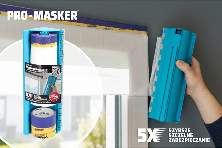 PRO-MASKER doskonale sprawdza się przy zabezpieczaniu takich elementów jak listwy, futryny, szafki, okna, drzwi, witryny czy ściany - wszędzie tam, gdzie liczy się dokładność i czystość pracy.