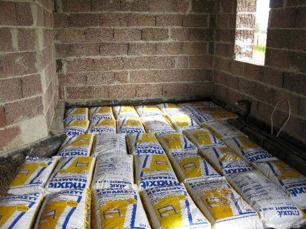 To metoda, która w sposób znaczący przyspiesza proces wykonania podłogi na gruncie. Po ułożeniu worków, sypkim keramzytem wypełnia się przestrzenie pomiędzy nimi, a następnie odpowietrza zamknięte worki, przecinając je. Keramzytu w workach nie zagęszcza się i nie pokrywa szprycem, tylko bezpośrednio na nim układa się izolację i szlichtę cementową.