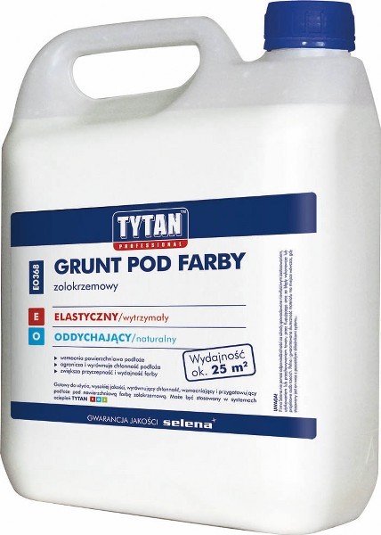 Fot.: Grunt pod farby EO Tytan ProfessionalNa podłoża takie jak tynki cementowe, cementowo-wapienne, płyty gipsowo-kartonowe, powierzchnie betonowe oraz cienkowarstwowe tynki mineralne stosować można każdy z nowych gruntów. Jednak przy innych rodzajach powierzchni warto sprawdzić zalecane stosowanie. Przykładowo, Grunt pod farby E doskonale przygotowuje do malowania tynki akrylowe. Do powierzchni zolokrzemowych i krzemianowych stosuje się Grunt pod farby EO, natomiast tynki silikonowe należy gruntować przed malowaniem Gruntem pod farby EOS. Analogicznie, jeśli powierzchnia ma być pokryta farbą akrylową zalecane jest użycie Gruntu pod farby E (akrylowego), a zwiększoną przyczepność krzemianowych powłok malarskich zapewni Grunt EO. Pod farby na bazie silikonu rekomendowany jest Grunt EOS.