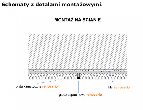 Podłoże pod Renovario płyty klimatyczne musi być solidne i nie może zawierać materiałów mogących wpłynąć na obniżenie przyczepności kleju ( np. rozpuszczalnika, luźnych składników, kurzu, piasku, wykwitów, brudu ). Stare tynki należy sprawdzić pod względem ich solidności i przyczepności do podłoża.