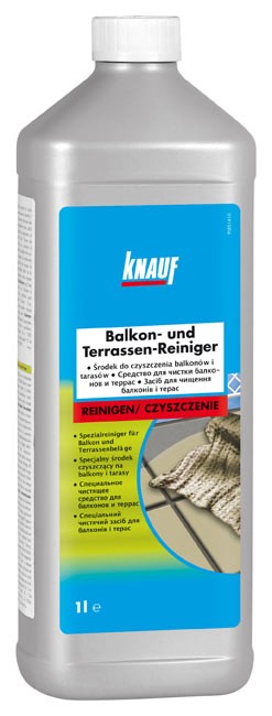Knauf Środek do czyszczenia balkonów i tarasów to skuteczny, alkaiczny koncentrat o silnych właściwościach czyszczących przeznaczony na tarasy, balkony, werandy i alejki. Skoncentrowany produkt do czyszczenia i odtłuszczania wylewki cementowej, terakoty, bruku, kostki chodnikowej. Bardzo wydajny, dający się spłukać, o delikatnym miłym zapachu. Usuwa gruntownie ciężko uporczywe, oleiste, tłuste zabrudzenia oraz pozostałości po środkach pielęgnacyjnych. Powierzchnia nabiera jasny i czysty wygląd.