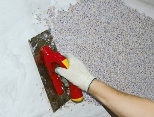 Nałożony tynk mozaikowy ma barwę mlecznobiałą. Właściwe kolory osiąga dopiero po wyschnięciu, czyli po upływie od 12 do 48 godzin, zależnie od temperatury i wilgotności powietrza. Fot. ATLASPrace tynkarskie należy tak zaplanować, by wykonać je w jednym cyklu technologicznym – nałożenia i zatarcia – nakładając metodą „mokre na mokre”. Jeśli pierwsza partia zaschnie przed nałożeniem kolejnej, widoczne będą miejsca połączeń. Z tego względu przerwy technologiczne z góry zaplanować należy w narożnikach i załamaniach ścian, na styku kolorów itp.