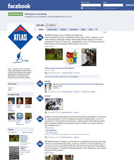 Atlasowe facebookowe konto to źródło informacji i ciekawostek z życia firmy i jej ludzi, doprawione fotkami i filmami.To także miejsce spotkań znajomych i przyjaciół firmy i marki, obecnych i przyszłych. Źródło: Atlas