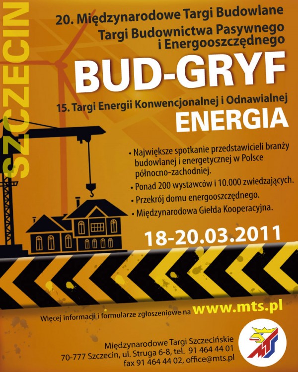 W dniach 18-20 marca 2011 roku w Szczecinie odbędą się 20. Międzynarodowe Targi Budowlane BUD-GRYF SZCZECIN, którym towarzyszą 15. Targi Energii Konwencjonalnej i Odnawialnej ENERGIA. Obie imprezy tworzą największe wydarzenie targowe branży budowlanej i energetycznej w Polsce północno-zachodniej.