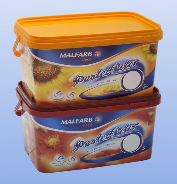 Opakowania produktów Malfarb z barwnymi etykietami produkowane są przy użyciu technologii IML, fot Plast-Box SALinię produkcyjną spółki PLAST-BOX opuszczają właśnie pierwsze, zdobione, prostokątne opakowania serii farb dekoracyjnych Pastel Color, które wyróżniają się przede wszystkim oryginalnym wzornictwem etykiet IML (In-Mould-Labeling) zatryskiwanych w opakowaniu w czasie jego produkcji. Technologia ta umożliwia naniesienie zdobienia, które jest bardziej odporne na oddziaływanie czynników zewnętrznych. Dzięki temu etykieta pozostaje czytelna i atrakcyjna wizualnie przez długi czas. IML daje pełną swobodę kreacji grafikom, co jest niezmiernie istotne zwłaszcza przy projektowaniu etykiet do farb kolorowych, gdzie w przekazie liczą się emocje. Dodatkowo jednorodność materiału wykorzystywanego do tworzenia opakowań (tak wiader, jak i etykiet) umożliwia poddanie ich recyklingowi.Rozszerzenie współpracy ze spółką PLAST-BOX uwarunkowane było rosnącym wolumenem sprzedaży produktów Malfarb, aczkolwiek nie bez znaczenia były też względy ekonomiczne – komentuje Mariusz Szubert, Product Manager z Malfarbu.