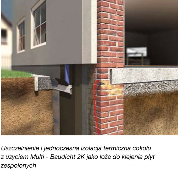 Uszczelnienie cokołu przed wodą rozbryzgową wykonywało się materiałami mineralnymi, część stykającą się z gruntem zabezpieczano za pomocą produktów bitumicznych. Przejście między tymi dwoma systemami stanowiło zawsze słaby punkt. Nowy, uniwersalny produkt uszczelniający, jakim jest Multi-Baudicht 2K firmy Remmers, dzięki zastosowanej technologii hybrydowej może niezawodnie uszczelnić obie te strefy.Dzięki temu możliwe stało się bezspoinowe przejście między obszarem poniżej i powyżej poziomu terenu. Dotyczy to wszystkich typów cokołów, z izolacją termiczną, bez izolacji termicznej, z okładziną kamienną czy tynkowanych. Wszystkie warianty niezawodnie i trwale uszczelnia Multi-Baudicht 2K jako jeden produkt stosowany w systemie Remmers. Również doprowadzenie zewnętrznej hydroizolacji do izolacji poziomej wg DIN 18195 da się za pomocą Multi-Baudicht 2K wykonać łatwo i trwale.