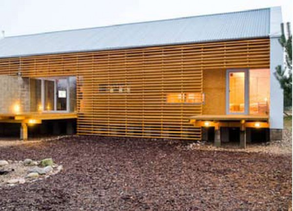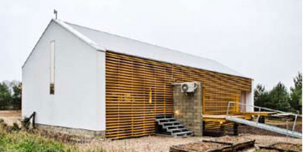 „Obiekt realizowaliśmy z materiałów pochodzenia organicznego, a więc odnawialnych i najłatwiejszych do recyklingu. Zaprojektowaliśmy innowacyjną konstrukcję drewnianą w formie powtarzalnych ram z belki dwuteowej, dającą nieograniczoną przestrzeń zbędnymi elementami. Unikalne są także przegrody zewnętrzne, przewyższające swoją termoizolacyjnością wymagania stawiane budynkom pasywnym” - mówi Emilia Durka-Zielińska. Zastosowanie zasad budownictwa pasywnego umożliwiło autorom projektu ograniczenie podstawowego zapotrzebowania na energię grzewczą o 90%!