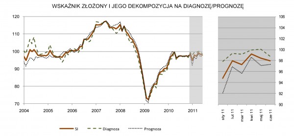 Składniki diagnostyczne wskaźnika kształtują się na poziomie niższym niż w maju, choć nadal wyższym niż składniki prognostyczne, pozostające na poziomie sprzed miesiąca.