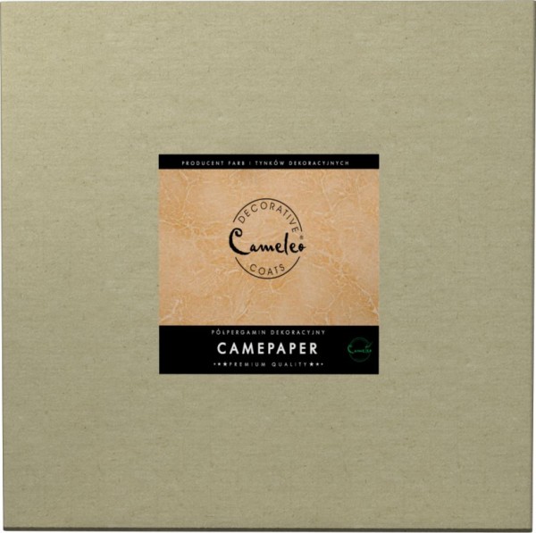 Interesujący motyw zdobniczy uzyskuje się, zgniatając delikatnie specjalny papier półpergaminowy, bezpośrednio przed nałożeniem go na ścianę. Lekko pomarszczony materiał jest następnie umieszczany na zagruntowaną powierzchnię, pokrytą wolnoschnącą farbą klejową, która wchodzi w skład systemu. Na tym etapie układa się ostateczny wzór dekoracji. Dociśnięta suchym wałkiem w celu usunięcia ze spodu powietrza, potrzebuje jeszcze wzmocnienia struktury kolejną warstwą kleju oraz pomalowania lakierem zabarwionym na wybrany kolor. Całość rozciera się gąbką dekoracyjną tak, by nie pozostawić zacieków.System Camepaper firmy Cameleo daje nieograniczone możliwości kreowania różnego rodzaju elementów ozdobnych. To sposób na stworzenie artystycznego wystroju pomieszczenia, które nabierze nowego, niebanalnego charakteru.