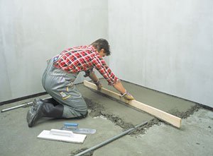 Wylewkę pod maszynę można wykonać zaprawą Atlas TEN-10: rozkłada się ją między listwami kierunkowymi i ściąga łatą. Fot. ATLAS Mogę zaproponować Panu jeden produkt, który rozwiąże oba problemy. Jest to Atlas Ten-10, zaprawa szybkotwardniejąca, czyli przeznaczona do szybkich napraw betonu, żelbetu oraz powierzchni posadzek i jastrychów betonowych. Minimalna grubość nakładanej zaprawy powinna wynosić 5 mm, zaś grubość wykonywanych posadzek i podkładów podłogowych może sięgać 30 mm. Zaprawa Atlas Ten-10 jest gotową, suchą mieszanką produkowaną na bazie najwyższej jakości spoiwa cementowego, wypełniaczy kwarcowych i dodatków uszlachetniających. Jest bardzo łatwa i wygodna w użyciu. Posiada doskonałą przyczepność do podłoża, a gęsta konsystencja pozwala swobodnie formować spadki. Zaprawę Atlas Ten-10 można również zastosować do wykonania wylewki pod maszynę produkcyjną, ponieważ cechuje ją bardzo duża wytrzymałość na ściskanie i zginanie.