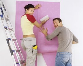Tapetowanie najlepiej wypada jako praca zespołowa. We dwie osoby pracuje się szybciej i skuteczniej – a i weselej – niż w pojedynkę. Fot. BananaStock